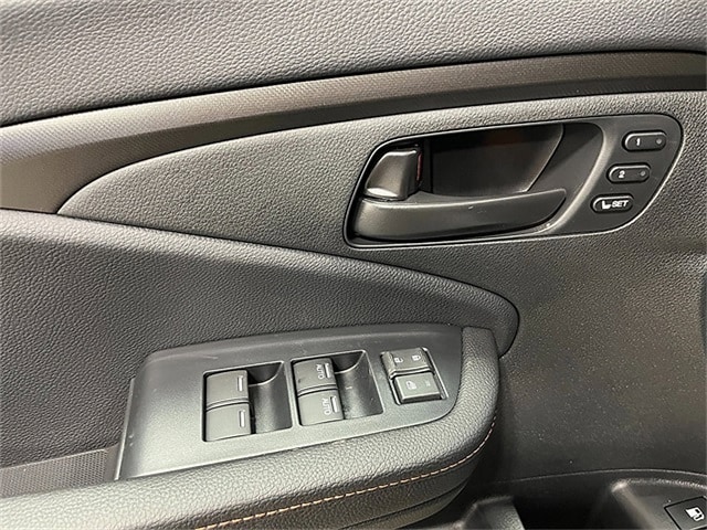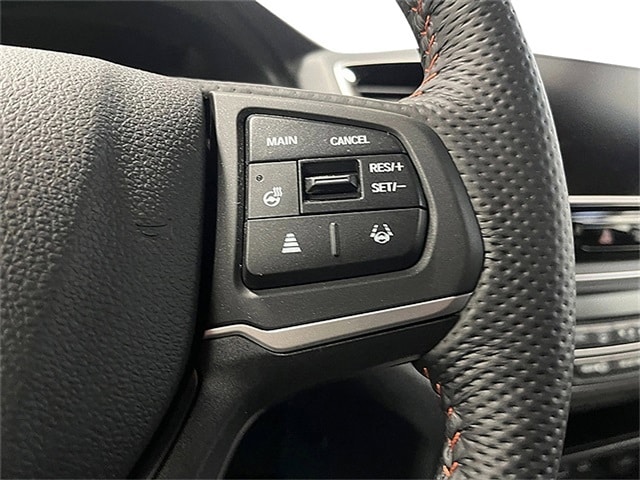 Interior Accents: The cabin features durable leather-trimmed seats with signature orange contrast stitching and embroidered TrailSport logos on the front headrests.